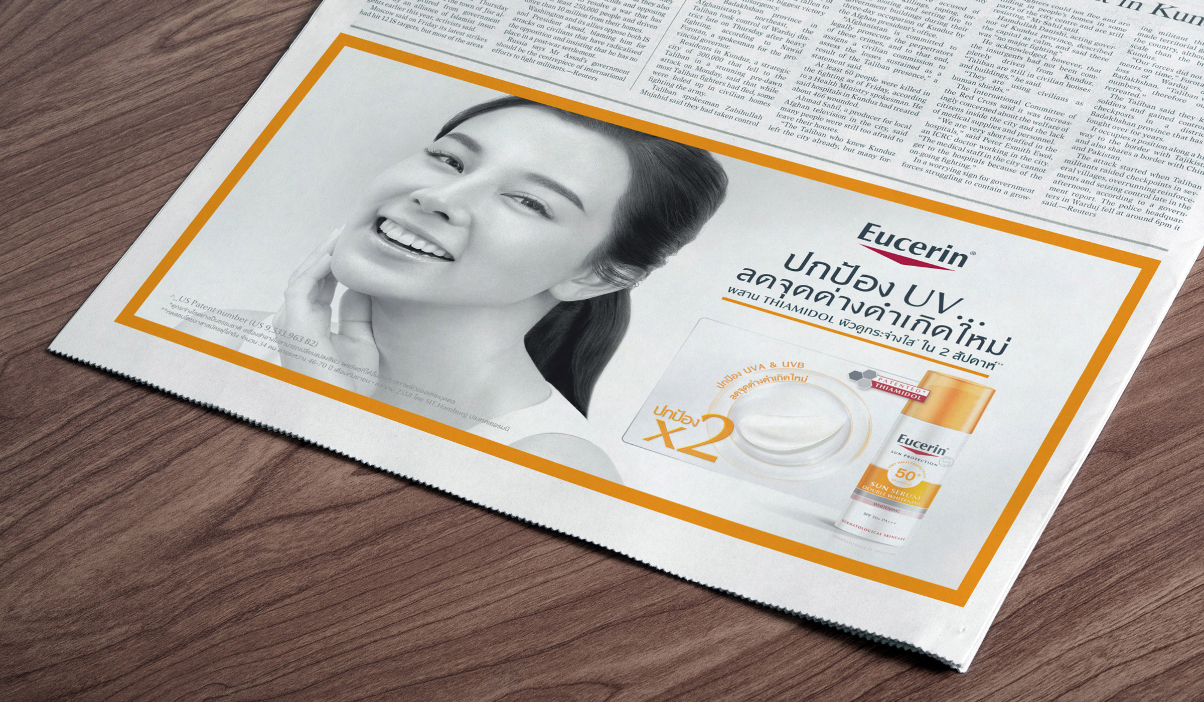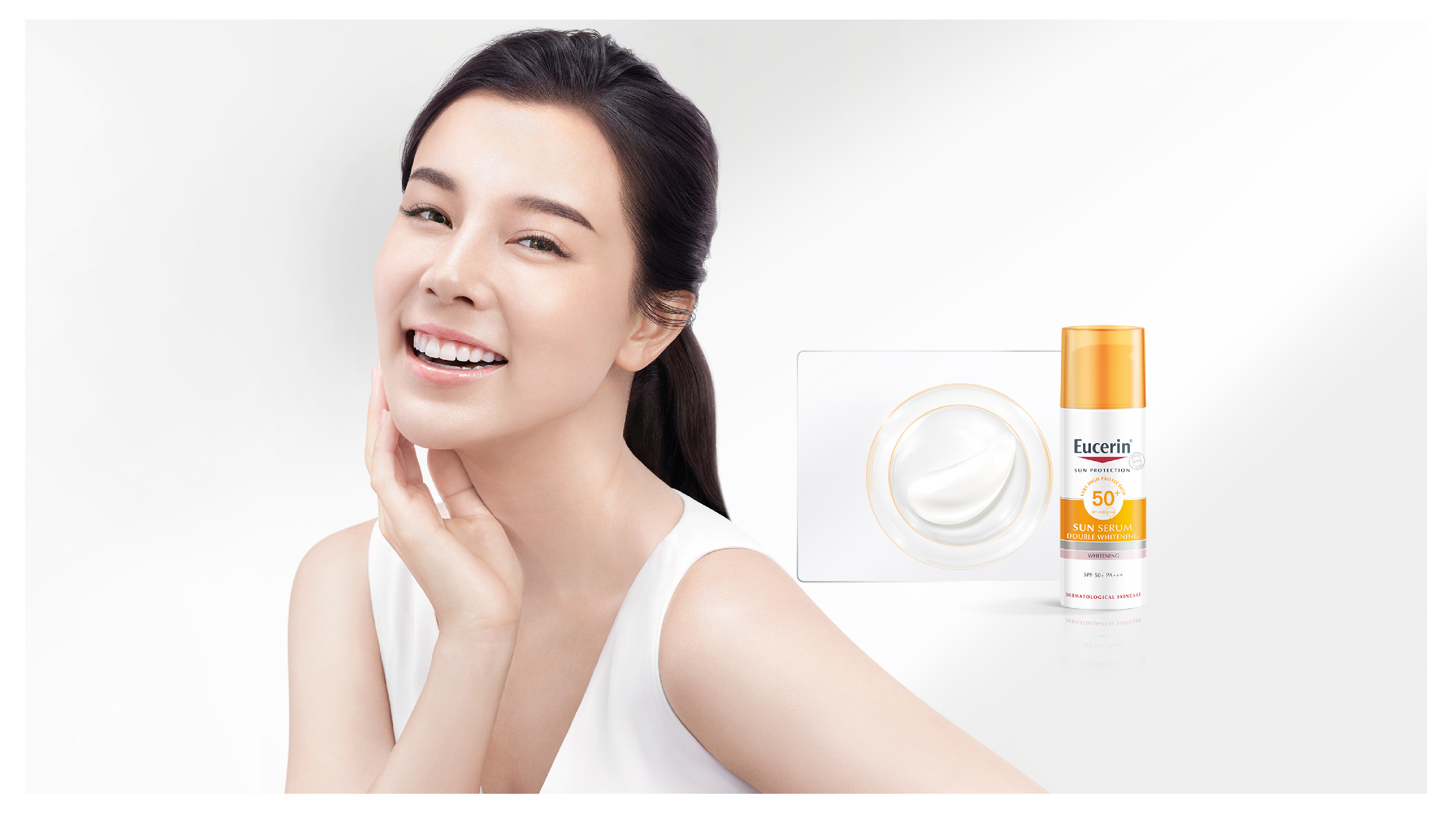 The communication campaign for Eucerin Sun Double Whitenting Serum highlights Thaimidol, Eucerin patented ingredient, that offers double